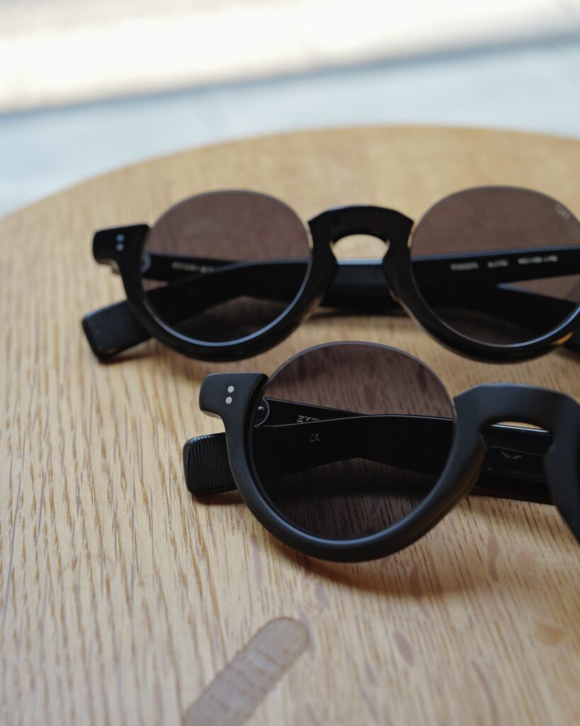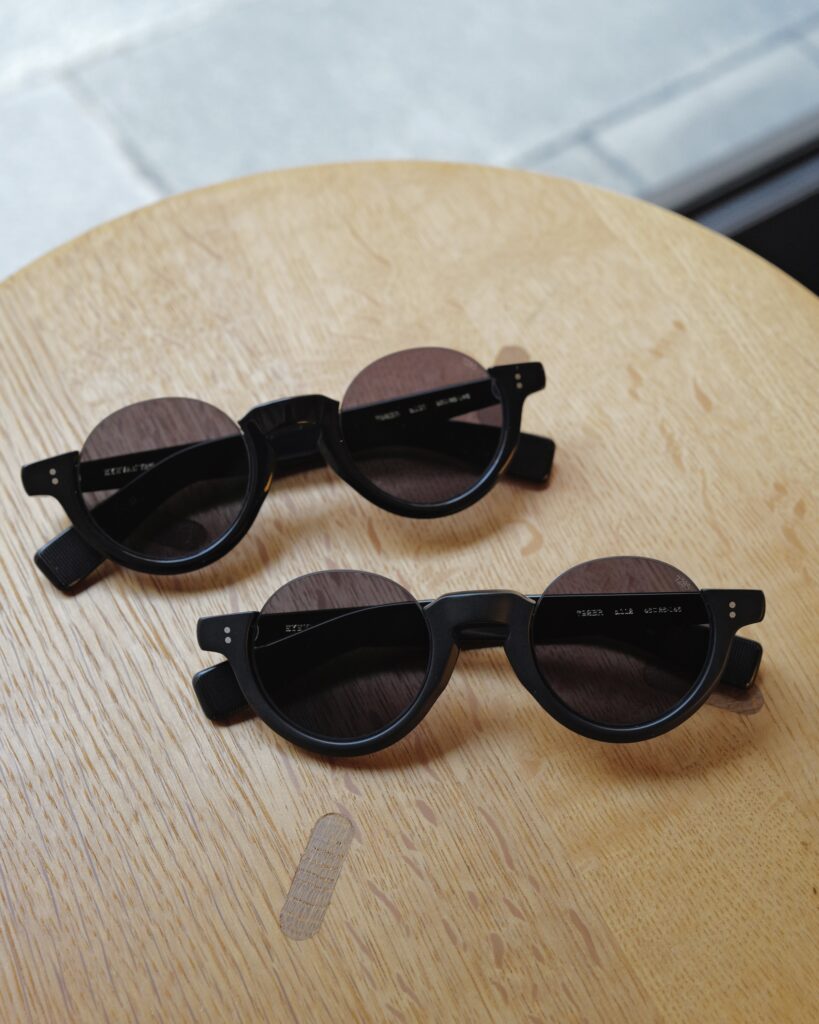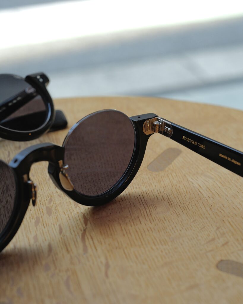 極太のフロントに合わせてテンプルにもBoldタイプが採用されています。天地幅8mmの蝶番は、EYEVAN 7285のシグネチャーパーツである、MA-1のジッパーに着想を得たミリタリー蝶番です。エッジの効いた存在感とEYEVAN 7285ならではのディテールに満足感を覚える一本、AFTERではポリッシュとマットの2種類のブラックで入荷しています。