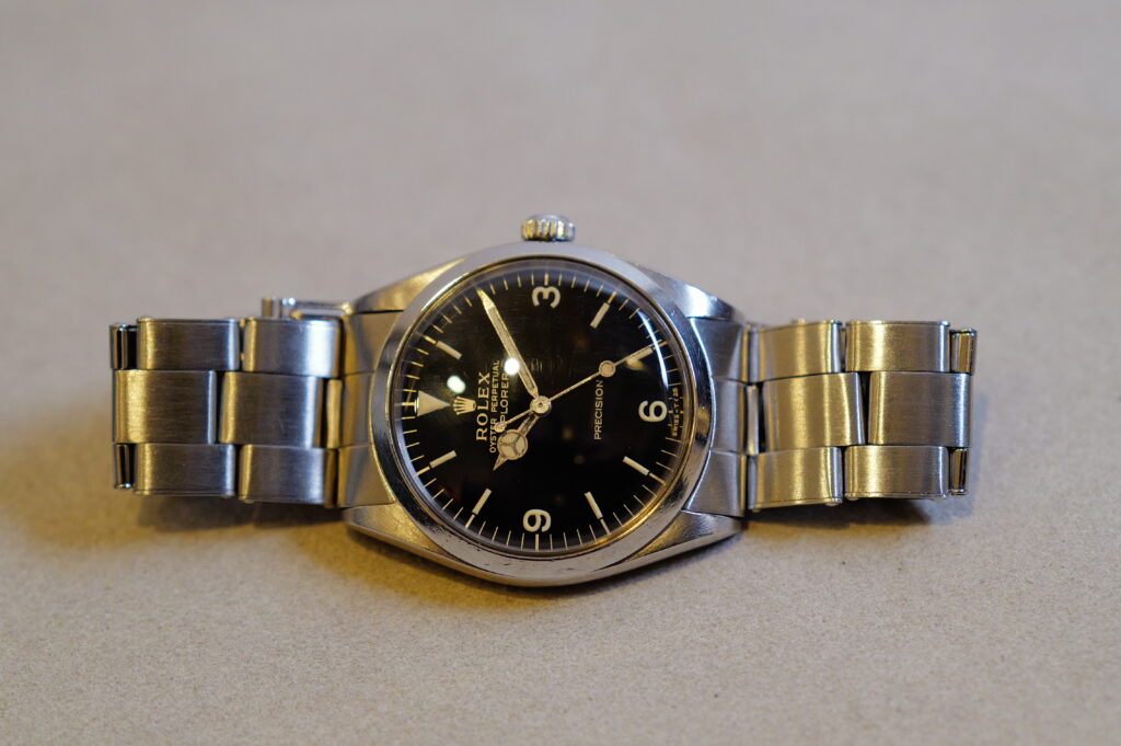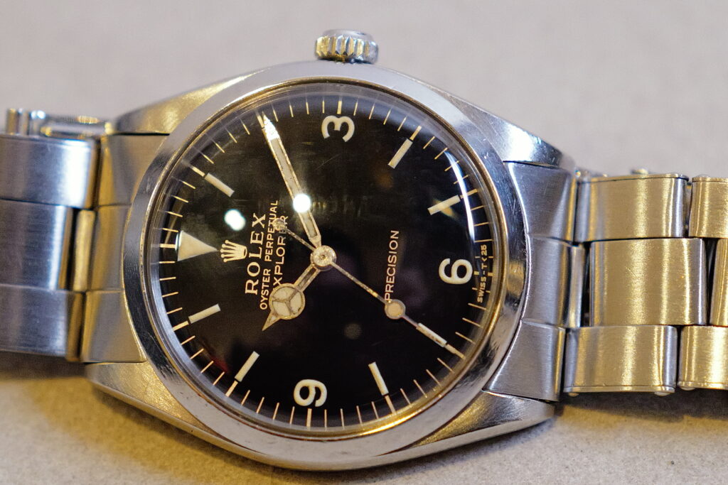 34mmのAir Kingのケースにエクスプローラーダイヤルを組み合わせたイギリスだけで販売されたといわれるモデルです。