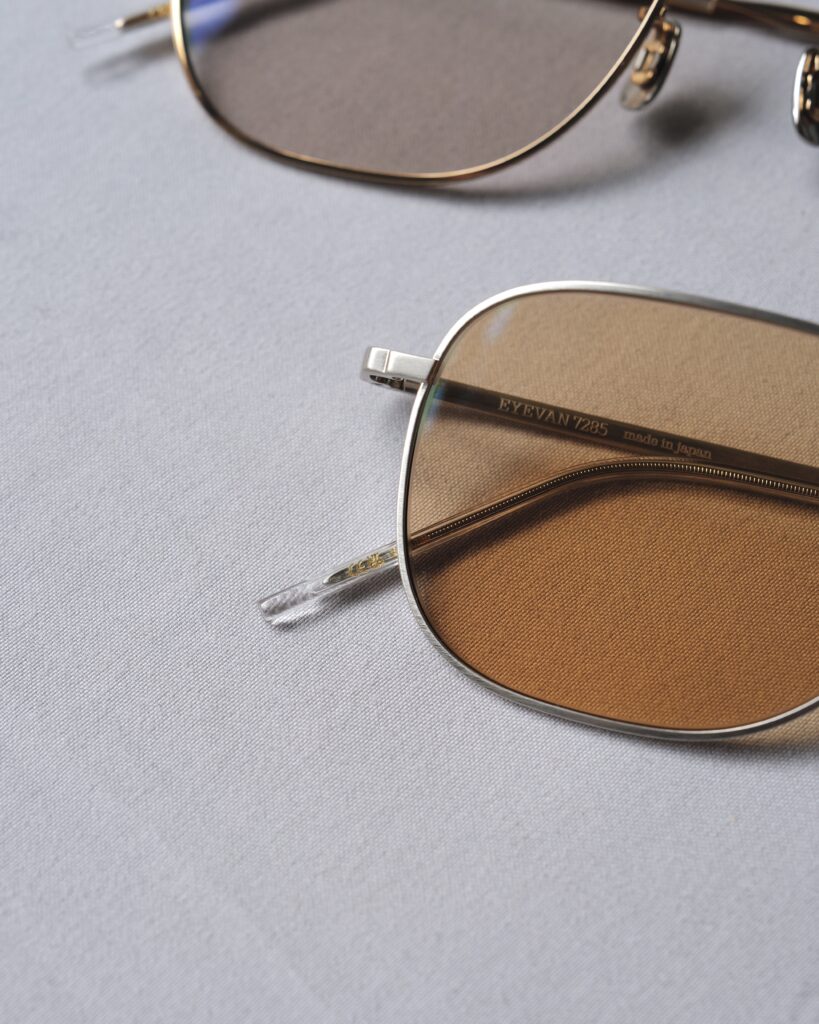 サングラスレンズには、金属の粒子などを混ぜ合わせて色味を調合して溶解後に一枚ずつ成形して製作する、日本製ガラスを用いたオリジナルの“アイヴァンカーブレンズ”を採用しています。