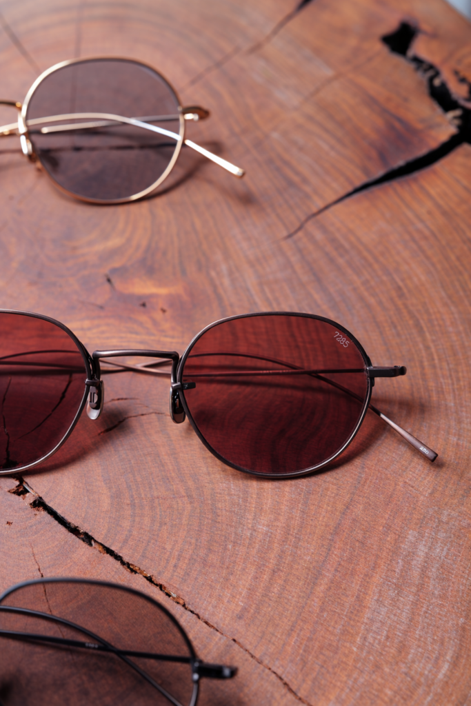 「綺麗にしすぎない我慢」とデザイナーの言うように、玉型は手書きのスケッチを修正することなくそのまま採用しています。実はかなりいびつでありながら、独特のニュアンスと顔馴染みのよさを持つ玉型は、EYEVAN 7285らしい特徴のひとつ。