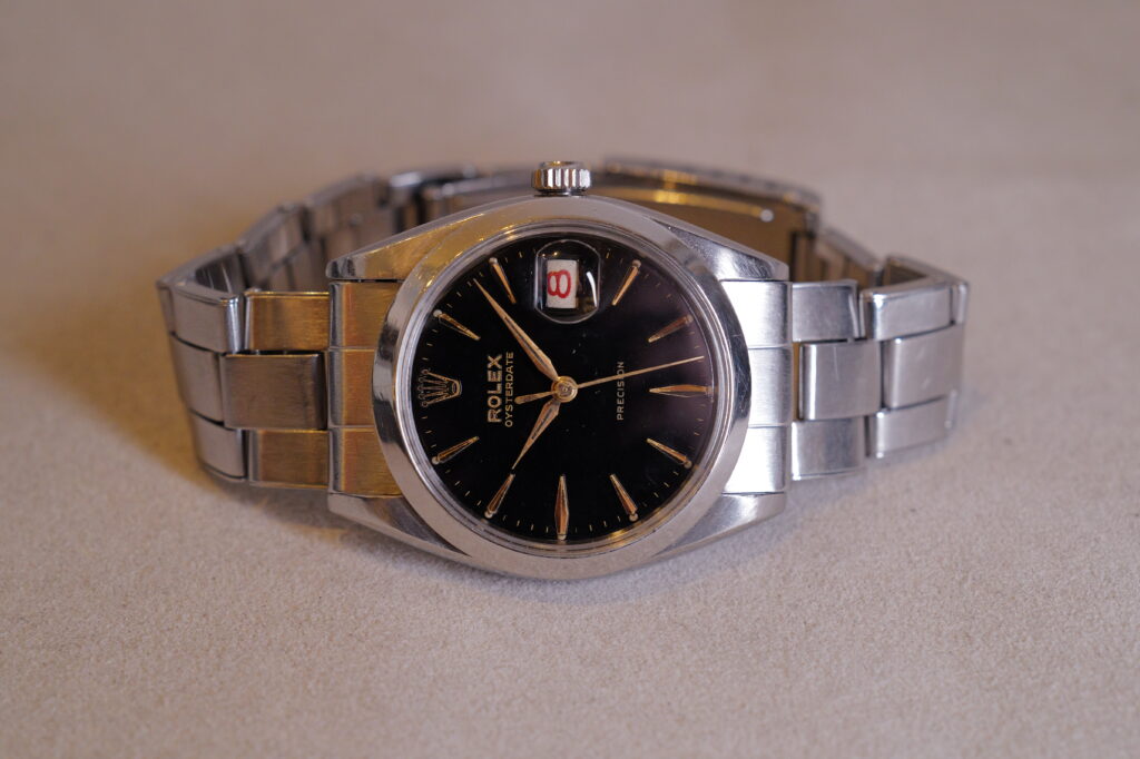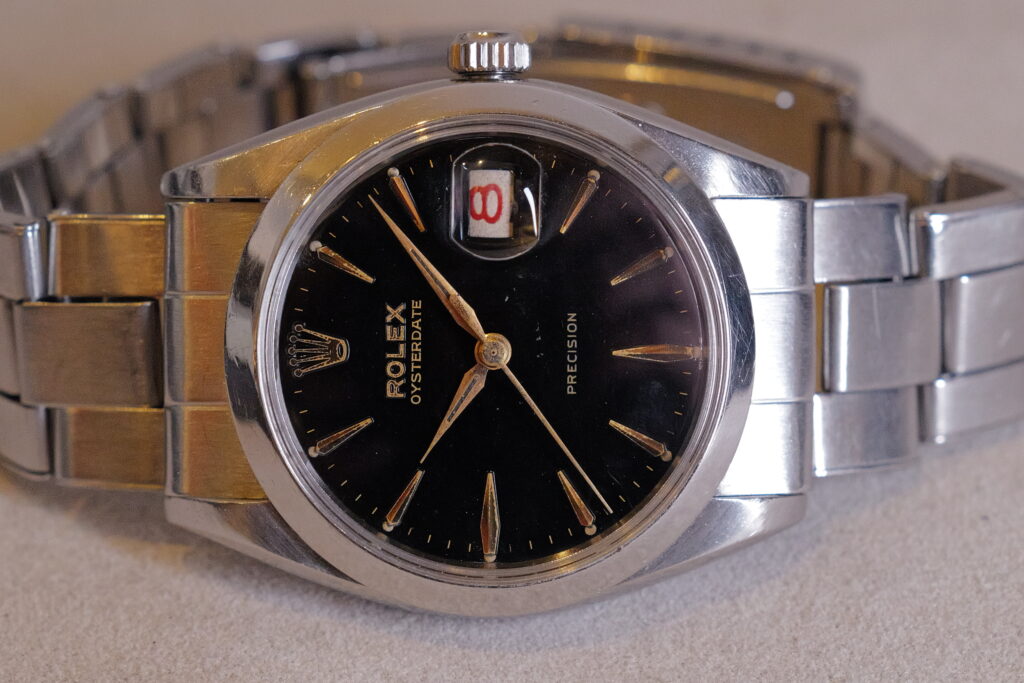 こちらの個体はしっかりと艶を残したミラーダイヤルにゴールドインデックス、赤黒のルーレットカレンダーと役が揃ったVintage ROLEXファンにはたまらないポイントが詰まった個体です。